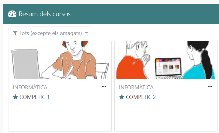 Ara veurem el taulell d’assignatures on ens hem matriculat. Per començar a treballar clicarem en un dels cursos i seguirem les instruccions del nostre professor.