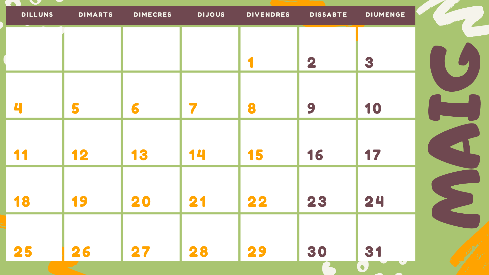 CALENDARI MES DE MAIG