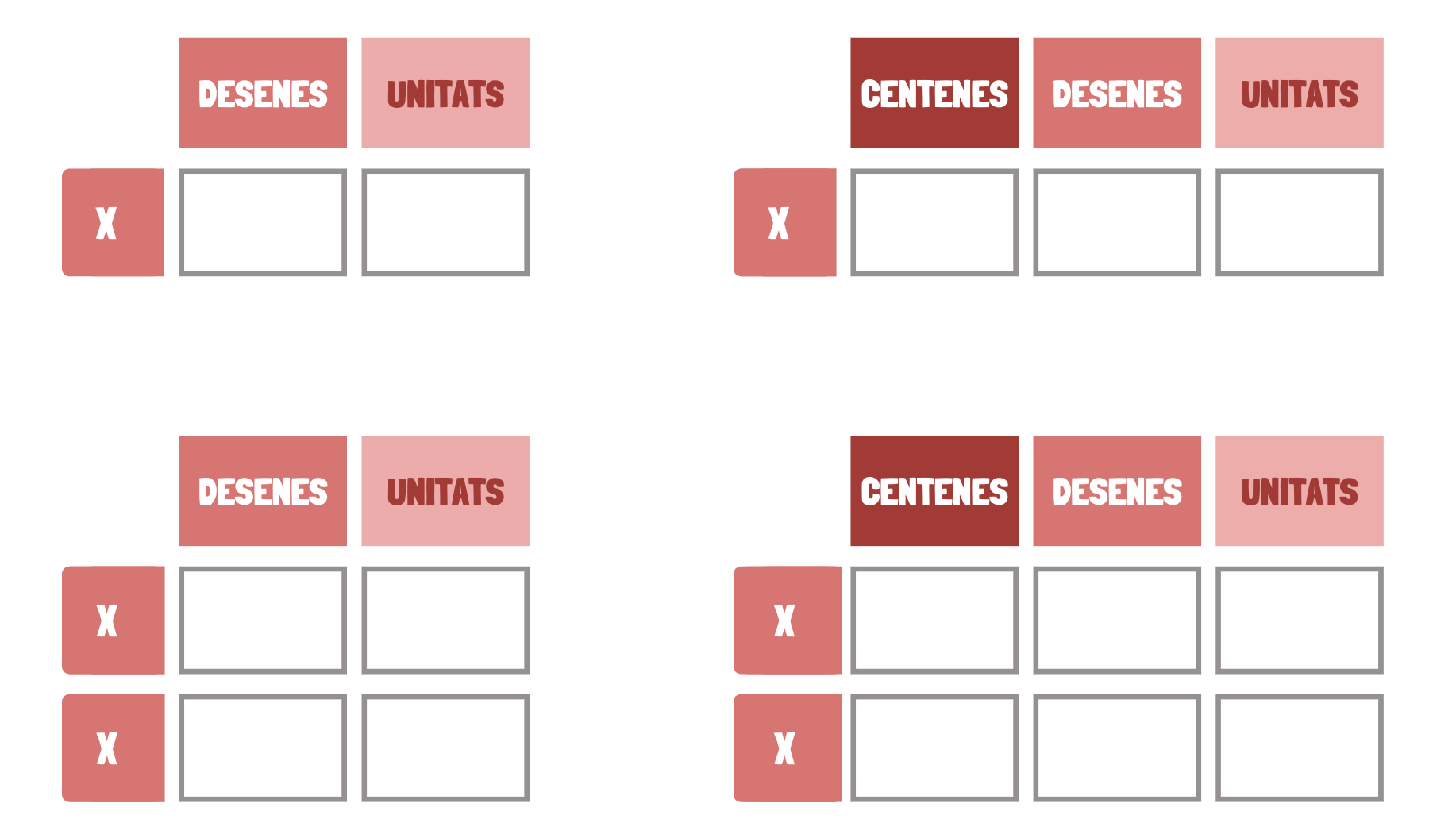 Has de trobar els resultats realitzant les capsetes multiplicatives.