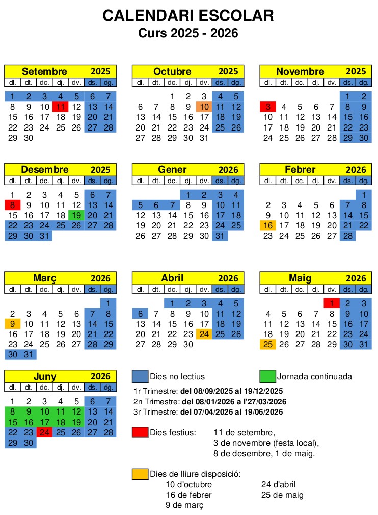 A partir d'aquest curs 2025-2026, la contractació va a càrrec des de l'Escola, amb el seguiment de la comissió de menjador derivada del Consell Escolar.