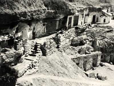 La immigració als anys 50 es va anar assentant en zones perifèriques de la ciutat. Els seus primers habitatges foren barraques i cases d’autoconstrucció. Als voltants del riu Ripoll, centenars de persones s’establiren a viure en coves. En aquesta fotografia podem veure com eren les coves de Sant Oleguer.