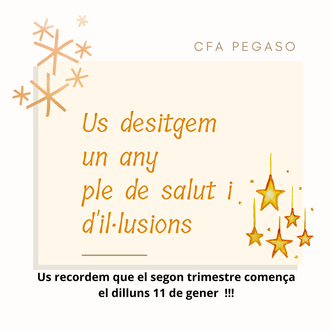 BON ANY 2021 per Administrador/a CFA Pegaso - dilluns, 4 de gener 2021, 12:40 Nombre de respostes: 0 Enllaç permanent