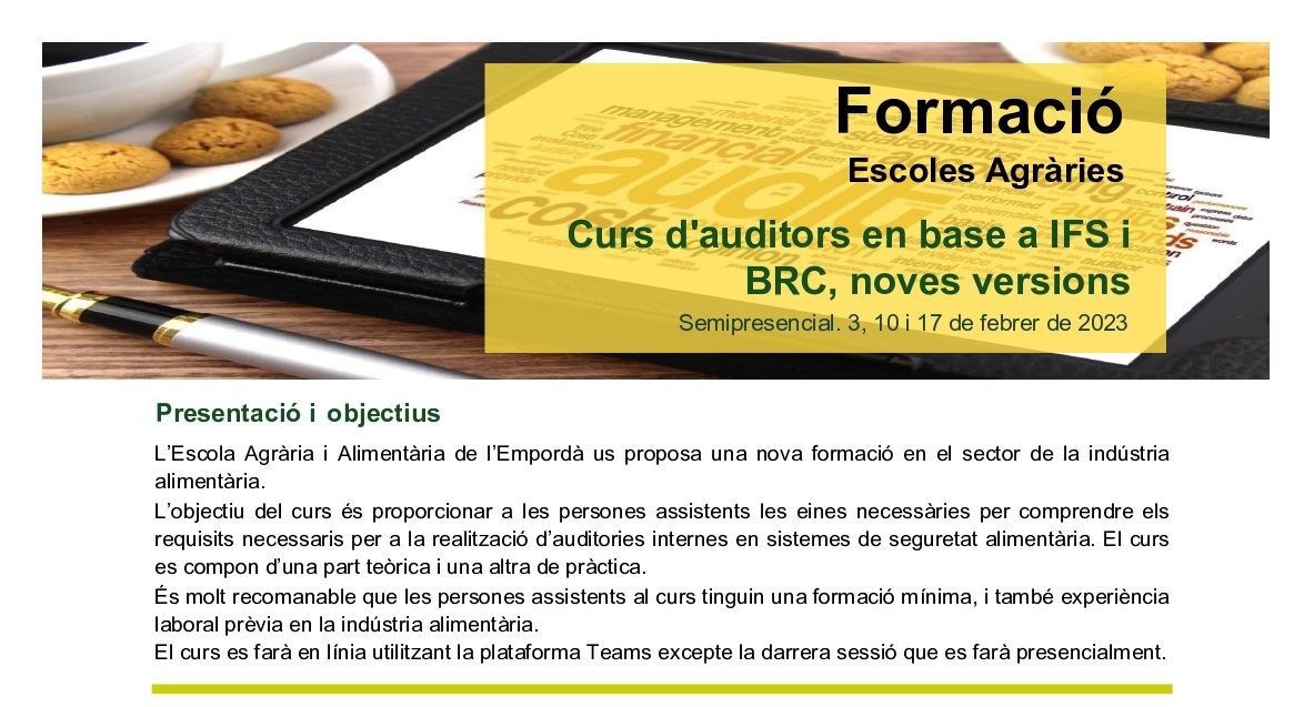 Curs d'auditors en base a IFS i BRC, noves versions