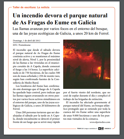 - Lee la siguiente Noticia. Luego inventa y escribe tu en tu libreta de Castellano una Noticia siguiendo el modelo que has leído.