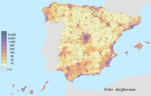 - Algunes de les zones menys poblades eren: tot el centre de la península a excepció de la província de Madrid i els municipis més importants.