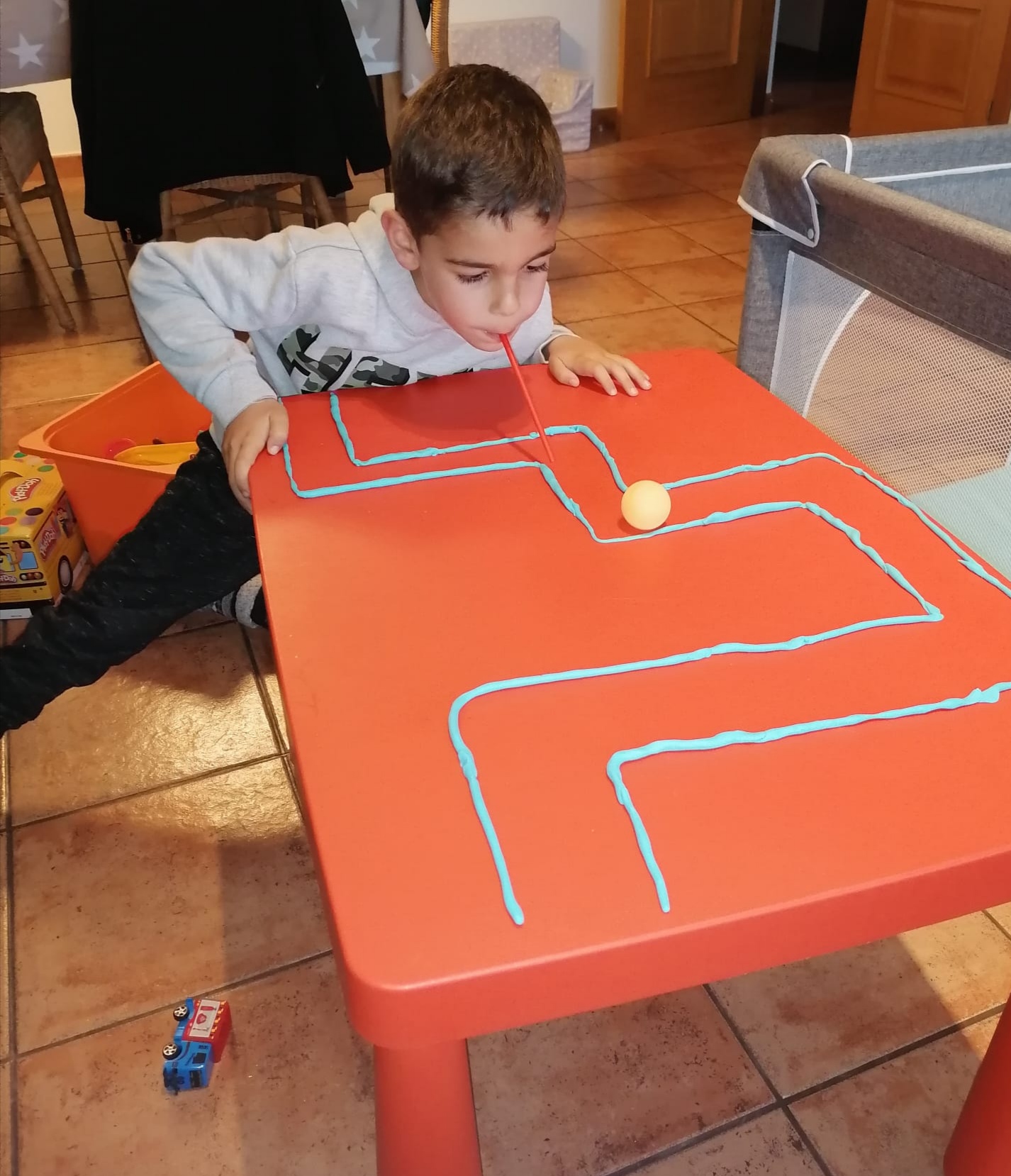 Aquest mes us fem una proposta ben divertida de muntar un senzill circuït per on fer passar una pilota, que bufareu amb una canyeta.