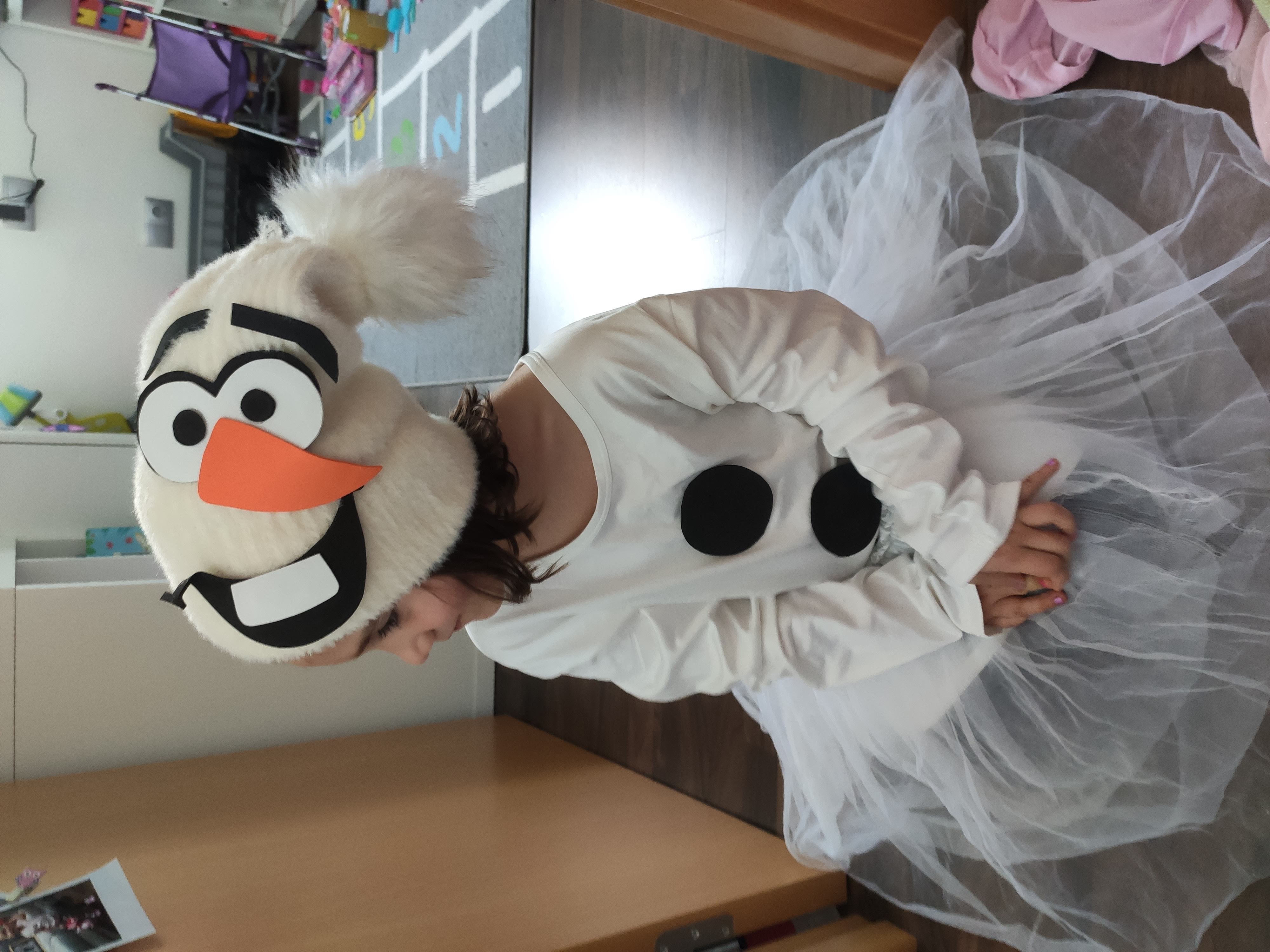 Marc  li encanta la disfressa de  l'Olaf. Suposo que per lo calentet que es i el casc d'astronauta que li va fer la seva iaia.