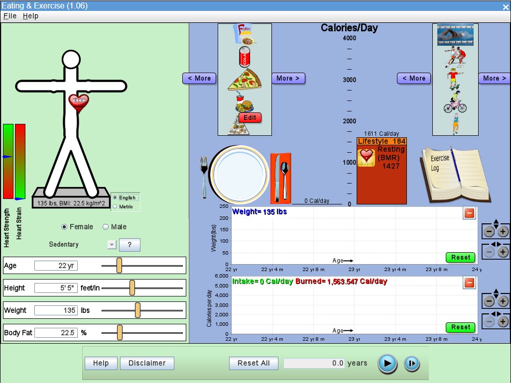 Per ajudar-te a prendre consciència de l’importància de la dieta equilibrada i fer esport, la primera imatge és un link o pots jugar amb aquest simulador.
