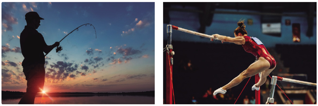 Observa atentament les dues imatges. En ambdós exemples es produeix un esforç de flexió i, com a conseqüència d’això, la canya de pescar, en el primer cas, i la barra de la gimnasta, en el segon, es corben.