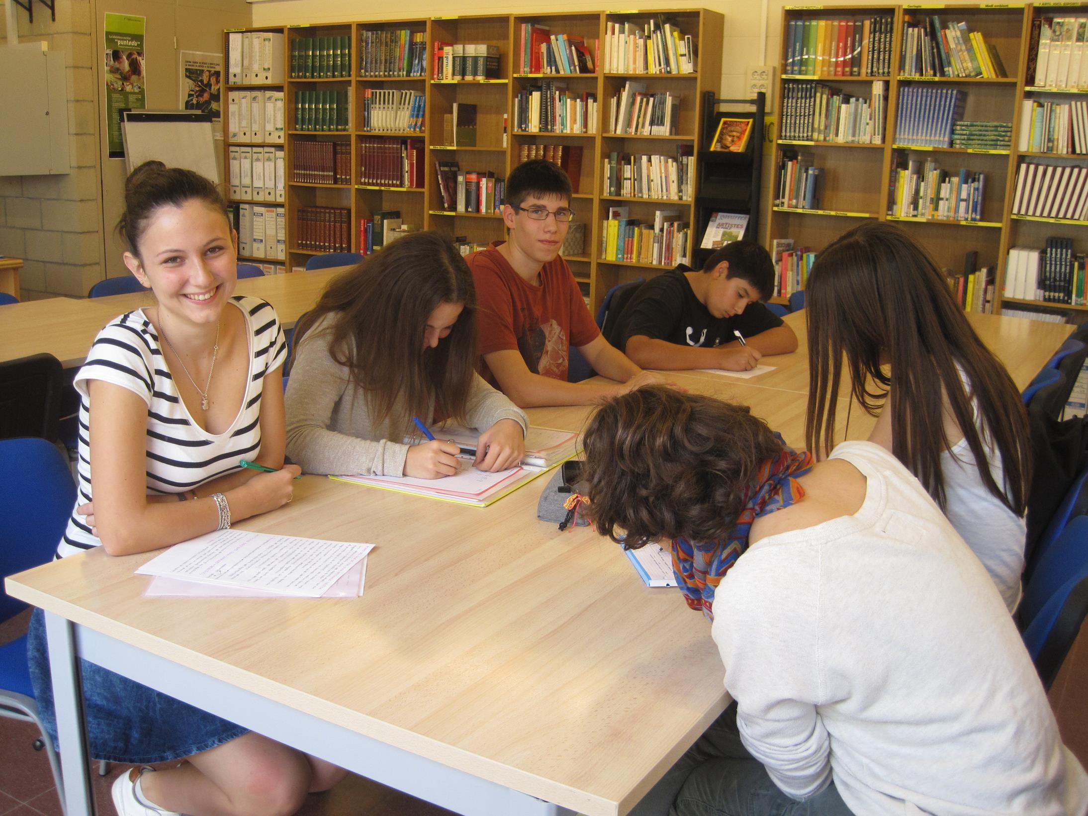 Els dimarts a la tarda, la biblioteca de l'institut està oberta i pots venir a fer els deures amb els amics. Els encarregats d'aquest espai d'aprenentatge compartit són dos exalumnes del centre: l'Ana Boada i en Bernat Mazó, que us podran ajudar a fer la feina.