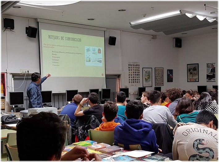 El 13 de març els alumnes de primer de batxillerat van assistir a la xerrada del periodista Xavier Codony dins de la IX edició del programa “La premsa a les escoles” on una vintena de col·legiats amb reconeguda experiència visiten 70 centres de tota Catalunya per explicar la funció social dels mitjans de comunicació i reflexionar sobre les noves formes de comunicació i consum informatiu, com les xarxes socials, per tal de discernir entre la informació veraç i contrastada en temps de “fake news” i postveritats.