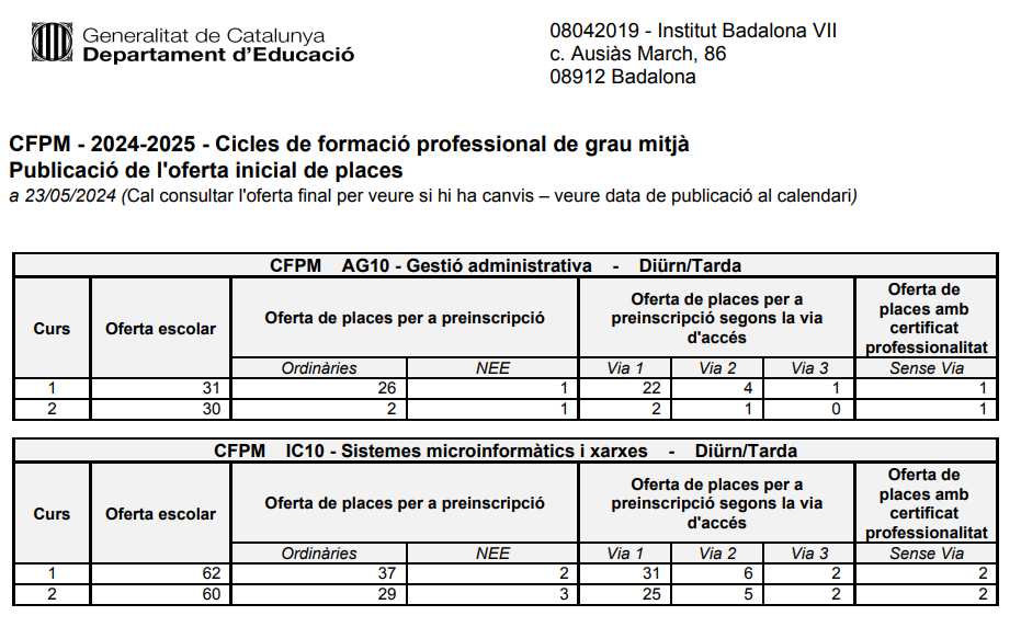 Alumnat assignat al centre en primera tanda a 15/07/2024.