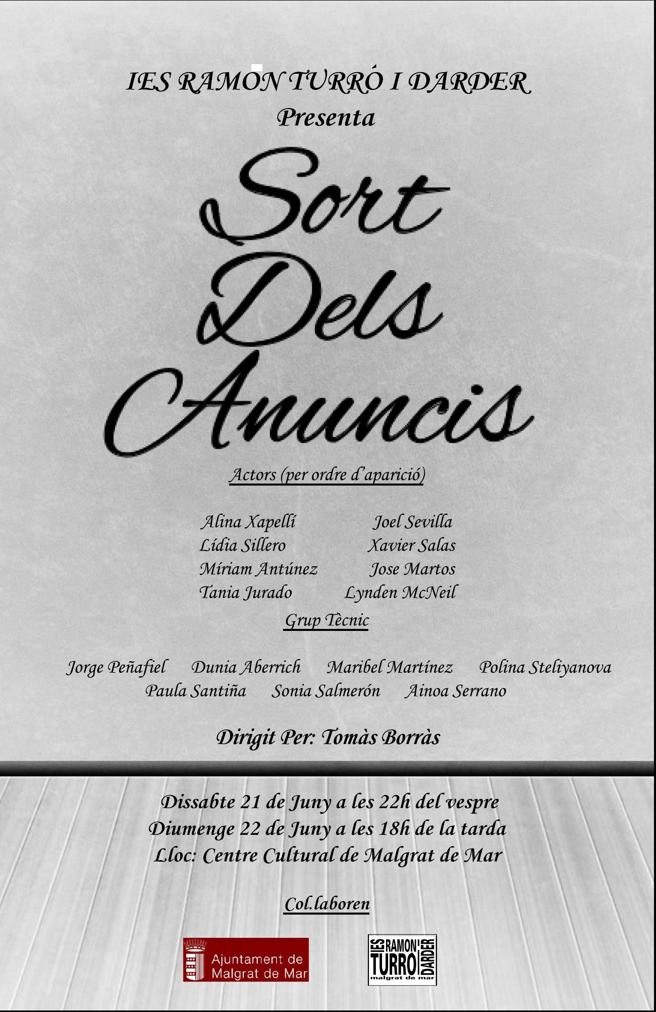 Els propers dissabte i diumenge, en els horaris indicats en el full informatiu que us adjuntem, alumnes del nostre centre protagonitzaran una obra de teatre titulada "Sort dels anuncis".