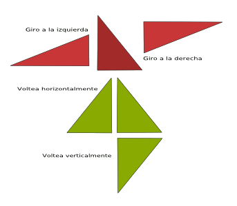 Son cuatro opciones que nos permitiran hacer giros de 90º y volteos respecto a un eje vertical y horizontal.
