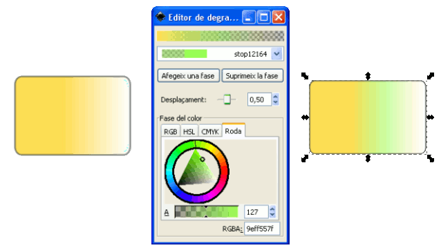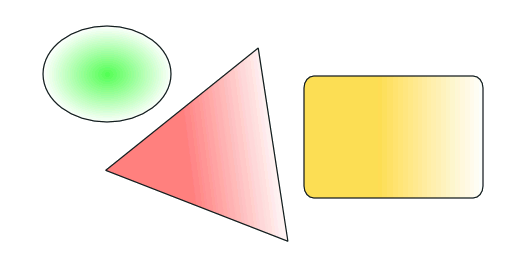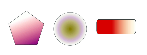 Otra posibilidad para rellenar objetos en vez de un color uniforme, se pueden usar degradados o gradientes para rellenos y/o bordes.