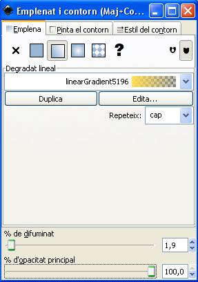 Con el objeto a cambiar el degradado seleccionado, elegimos del menú "Objecte" la opción "Emplenat i contorn" y después Edita: