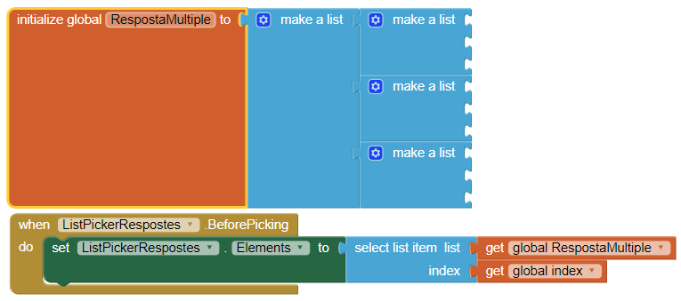 Possible ampliació: Un cop comprovada que l'aplicació funcioni de forma correcta, podem millorar el joc una mica més. Et proposem que intentis aconseguir que les respostes que es puguin triar per a cada pregunta siguin diferents. Una pista, cal fer llistes de llistes.