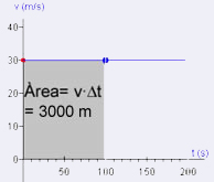 La Figura 13 mostra un gràfic velocitat-temps d'un moviment uniforme amb una velocitat constant de 30 m·s-1. D'acord amb l'equació del moviment del mru, el desplaçament del mòbil en els primers 100 s és