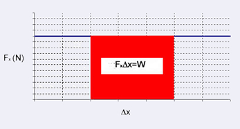 és igual a l'àrea (Figura 8). Aquest resultat es pot generalitzar a qualsevol força encara que no sigui constant, de manera que el treball realitzat per una força es podrà determinar sempre calculant l'àrea del gràfic força-desplaçament, és a dir, de la component de la força en la direcció del moviment en funció del desplaçament.