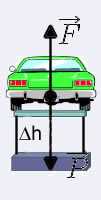 L'elevador fa un treball que es calcula multiplicant la força vertical que ha hagut de fer per l'altura a la que arriba el vehicle. Com que la força que cal fer és igual al pes del vehicle