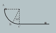 76 Deixem anar un cos d'1,0 kg de massa des del punt A, situat sobre una pista constituïda per un quadrant de circumferència de radi R = 1,5 m la qual es considera negligible el fregament, tal com es veu a la Figura 20 Quan el cos arriba a la part inferior del quadrant (punt C), llisca sobre una superfície horitzontal fins que queda aturat a una distància de 2,7 m del punt C. Trobeu: