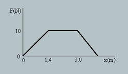 67 Una partícula d'1 kg de massa que es mou en la direcció i el sentit positius de l'eix "x" va a una velocitat de 10 m·s-1 quan passa pel punt x=1,4 m. Si l'única força que actua sobre aquesta partícula és la representada en la Figura 19,