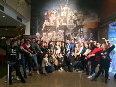 Després d’aquesta ruta “teatrera” vam entrar, per fi, al gran teatre Victòria. Tots estàvem molt emocionats. El primer que ens van explicar un cop ja asseguts, és que tenen un concurs a Instagram, on has de penjar una foto amb tots els teus companys de classe davant del “photocall” i et regalen, si guanyes, una classe d’esgrima. Òbviament ho vam fer, aquí el resultat: