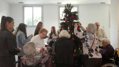 Avui com quasi tots els dijous hem baixat a la residència d'avis, però avui ha sigut un dia diferent i especial, doncs en lloc de fer el taller, entre tots hem muntat i decorat l'arbre de Nadal de la residència amb boles i diferents figuretes que van fer els avis amb els nens de 1r de religió.