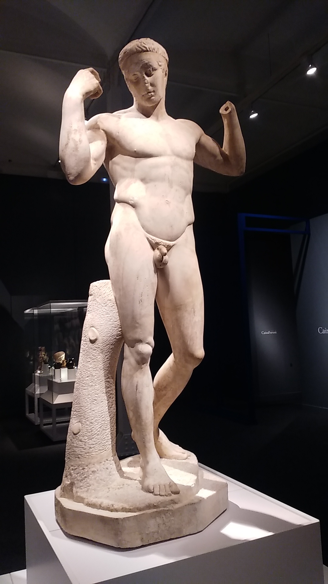 En la primera visita al CaixaFòrum, vam veure una exposició temporal anomenada “Agon! La competició a l’antiga Grècia”, on s’exposen obres originals proporcionades pel “ The British Museum”: gerros, pintures, estàtues de déus i semidéus, instruments, bijuteria, peces relacionades amb episodis mítics com el Judici de Paris, els dotze treballs d’Hèracles, la guerra de Troia, etc.