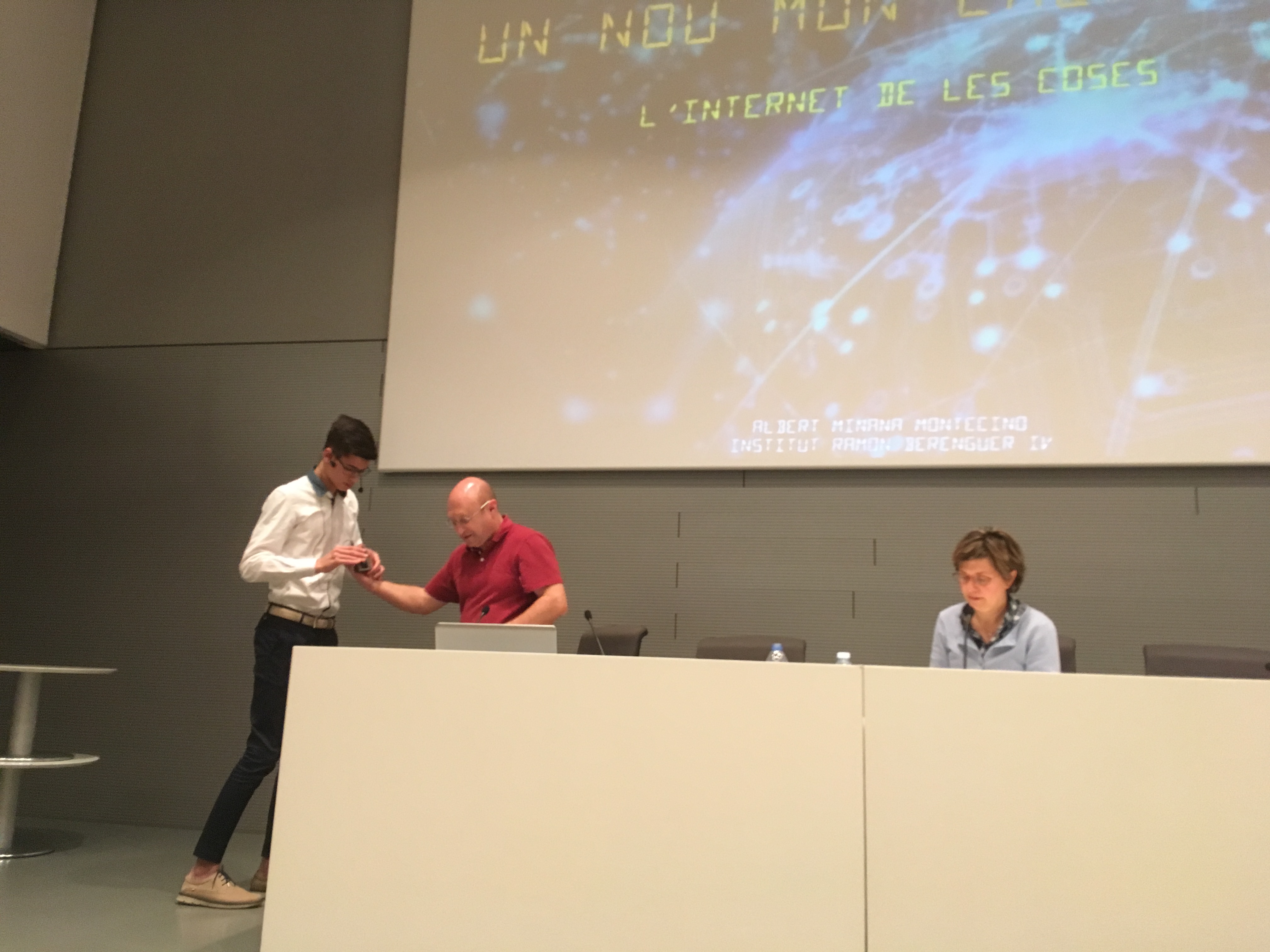 i Albert Miñana amb "L'internet de les coses. Una idea de les possibilitats de connexió del mòbil a la vida quotidiana", dirigit pel professor de Tecnologia Andrés López.