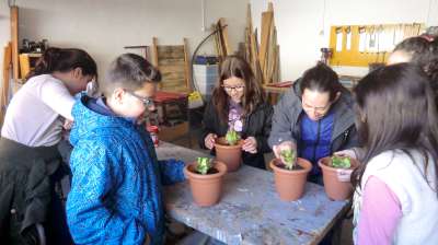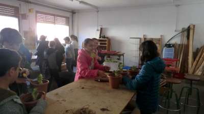 - Taller d’hort (a càrrec de la professora de Ciències Naturals: Aloña Gorostidi): els alumnes de primària van visitar l’hort i van conèixer el seu funcionament i les espècies més adequades per créixer. Després van plantar un enciam en testos, que ens van endur a casa.