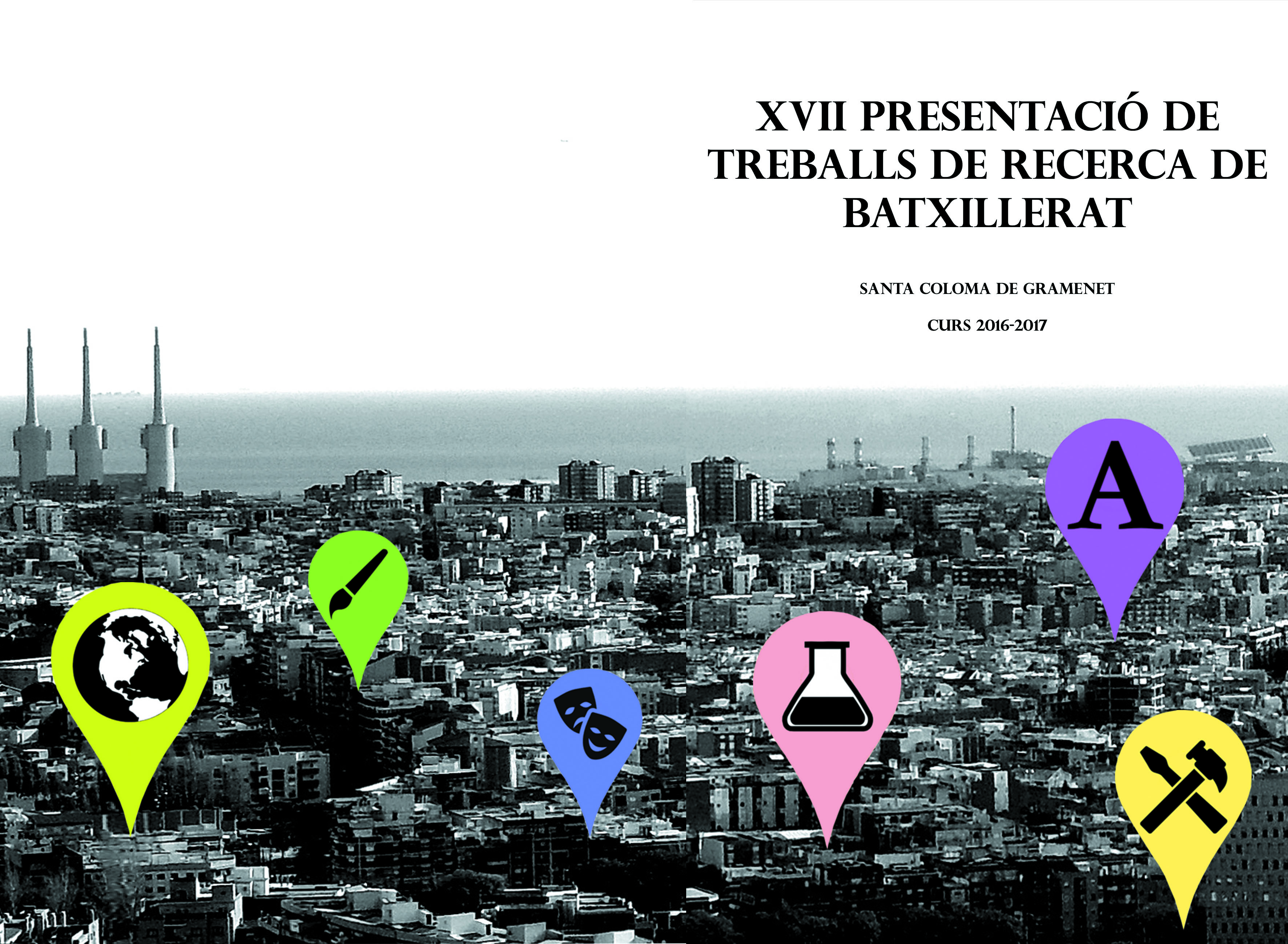 Al principi, només tenia petites idees, però el principal objectiu era que es poguessin quedar quedar reflectits en la portada tots els batxillerats.  D’aquesta manera, i combinant un concepte modern com és la fotografia amb modificacions, vaig fer el meu disseny, en el qual es mostra la icona de localitzador típica de Google Maps, donant a entendre que en la nostra ciutat pots trobar tots els batxillerats possibles.