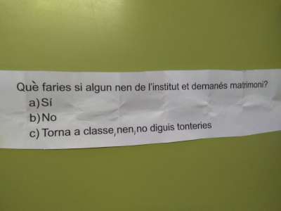 Arribats a aquest punt hem pensat que durant els anys que has estat aquí hauràs viscut moltes experiències amb els alumnes, i t’hem preparat un petit joc. Consisteix en una capsa on hi ha cinc càpsules. Dintre d’aquestes càpsules hi ha petites situacions amb opcions que hauràs de triar segons et convingui: