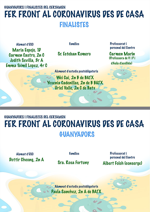 Avui, tal com vam anunciar ahir, us fem arribar el veredicte del certamen Fer front al Coronavirus des de casa. Aquest, inclou tant els finalistes com els guanyadors.