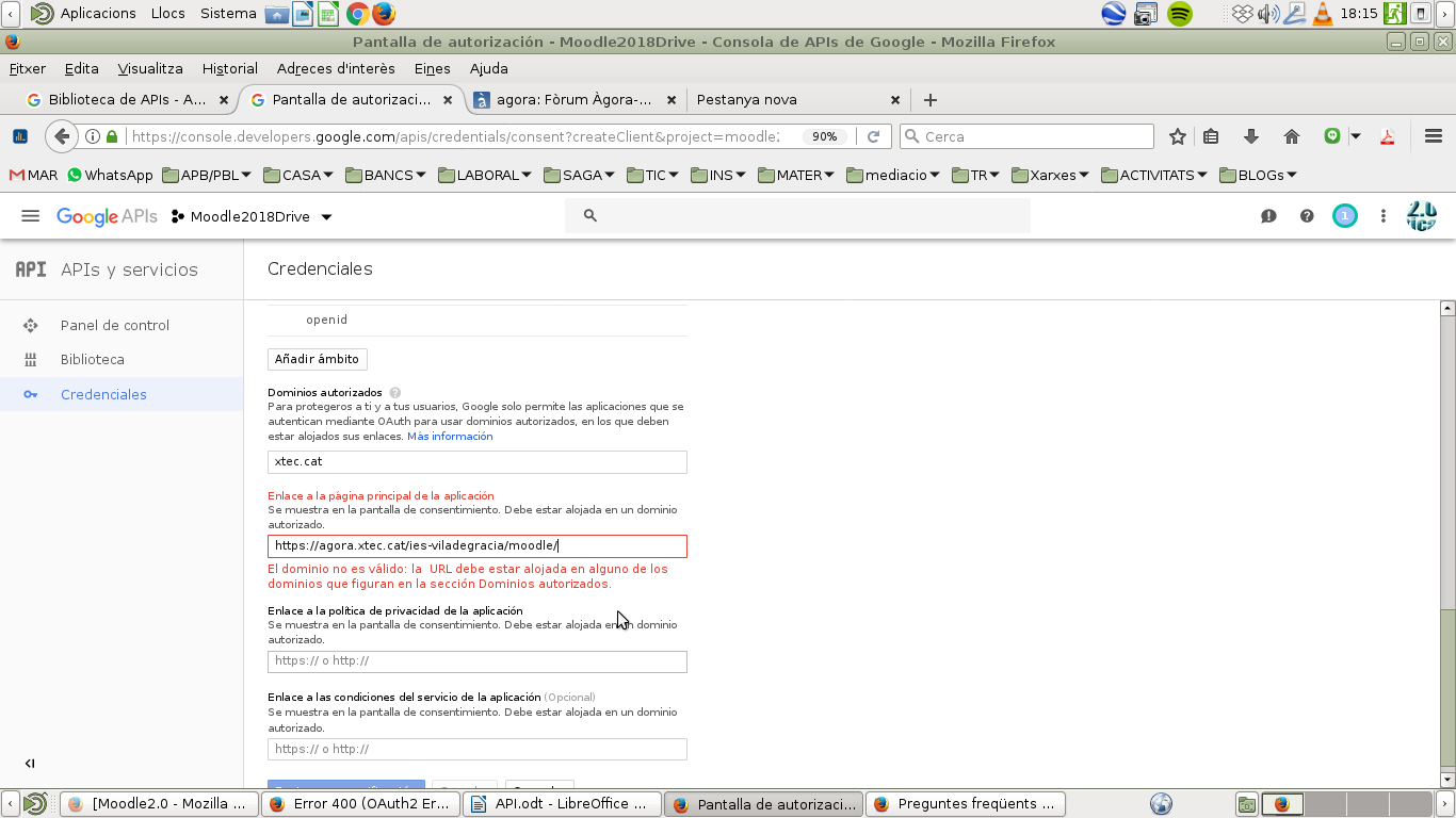 URIS autorizados https://agora.xtec.cat/inspm/moodle/admin/oauth2callback.php